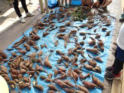 みんなで並べてみよう!長いお芋・真ん丸お芋・ほらこんなに大きなお芋もあったよ(^^)