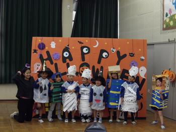 お化けに変身した子どもたちの姿がたまりませんね。ミイラやロボットにも見事変身!それぞれの工夫が際立っていますよ(^^)