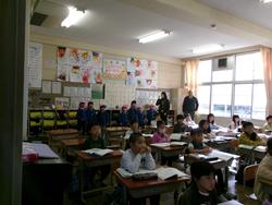 今日はもう一つの小学校、「緑が丘東小学校」に行ってきました。校長先生・教頭先生が子どもたちを迎えてくださいました。
