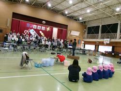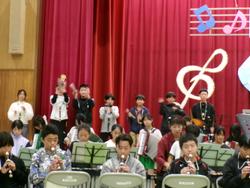 そして、体育館では6年生が音楽会の練習の真っ最中でした。迫力ある演奏だけでなく、楽器の振り付けもダイナミックで子どもたちも思わず手拍子してしまいました。