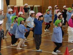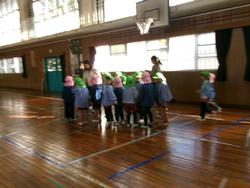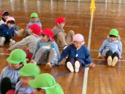 体育館に着くと…1年生がお出迎え♪今日は体育でしている体操を教えてくれましたよ。みんなもすぐにマスターして上手!