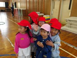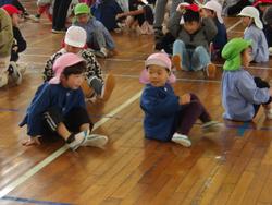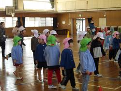 続いては引っ越し鬼ごっこ!どちらも1年生が考えてくれた遊びです。昨年のもも組さんにも出会えて嬉しいね!
