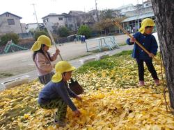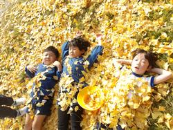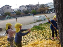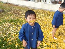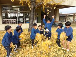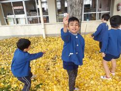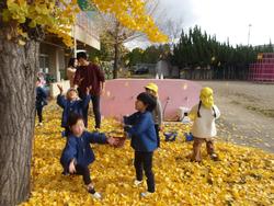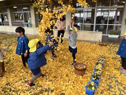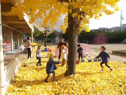 今年も金色の絨毯になっています。そして、落ちってくる葉っぱは子どもたちのとっておきの遊びの宝物♪