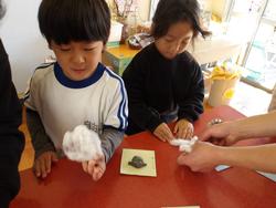 12月の工作タイム♪(幼稚園で採れた綿を使って♡)