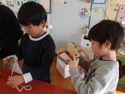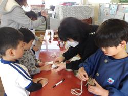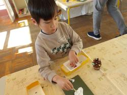 今月はクリスマス♪工作先生が自然物を使った飾りを教えてくださいました。
