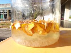 かりんジュースを作ってから待つこと3週間余り。こんなにシロップが溶け出して♪いよいよ試飲です。