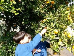 実は…三樹幼稚園でミカン狩りをしていると、なぜかミカンの木にかぼちゃが!