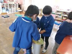 なんと、そのかぼちゃをお土産に頂いた子どもたち。早速もも組さんが下ごしらえしてくれています。