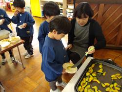 あまりに美味しくって、何回もおかわりする子が続出でした。空飛ぶかぼちゃはすごいですね。