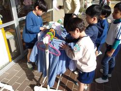 自分たちできれいにするところを見つけて動いている姿が素敵です。洗濯を干すのもこの通り(^^)