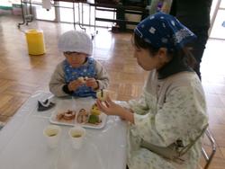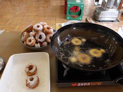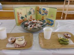 パンを焼いている間、もう一つのお楽しみは…バムとケロのお話に出てくるドーナツタワーづくりに挑戦です♪