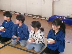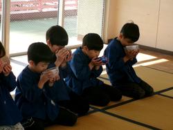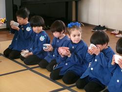 お茶碗の持ち方や頂き方をしっかり聞いて…2回目と言うこともあり、もも組の子どもたちとっても上手です。