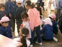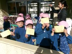 今日はもも組さんと自由ヶ丘認定こども園のお友だちと小学校へ出発です。