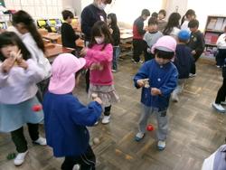 今日は生活科の中で学習する「昔遊び」を一緒に体験です。コマ回しやあやとり・だるま落とし・カルタなどいっぱい!