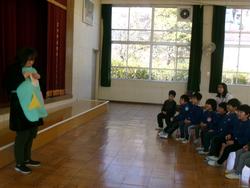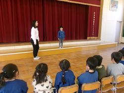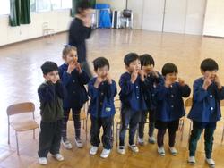 今日は1月生まれのお誕生会です。一人でもしっかり、名前やインタビューに答えていました。