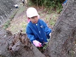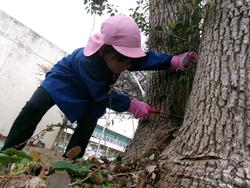 もも組の子たちもカムになってのこぎりで木を切ってみることにしました。