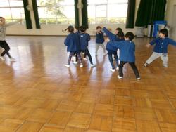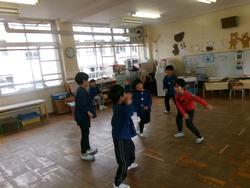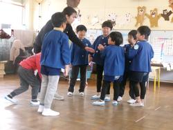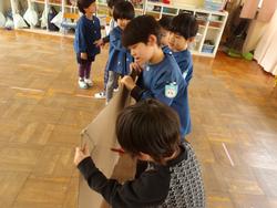 お部屋に戻ると…カムごっこが始まり、「カーン」「カーン」と勢いよく木を倒す子どもたち!もうお話の世界で楽しむ子どもたち♪
