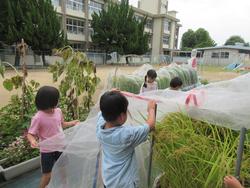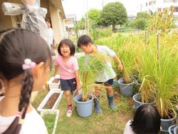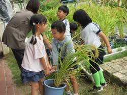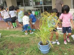 1学期に運んだ時よりも、こめちゃん・うえちゃんの背丈は伸び、穂もついているので、