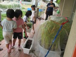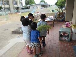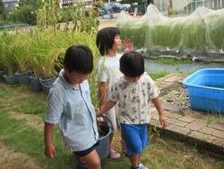 そして、バケツを運び始めていると、なんと今回は年少さんたちが手伝いに来てくれました!