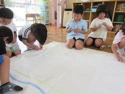 そこで、ある程度制作を楽しんだところで一度集まり、作品を見てみました。