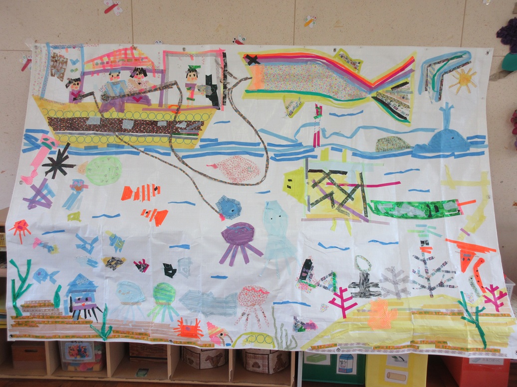 「この辺はサンゴでいっぱいにしよう!」と役割をもって作ったりして制作しているうちに、