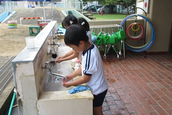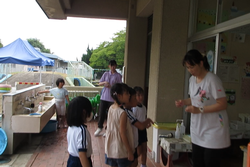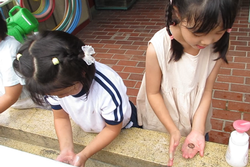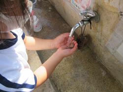 子どもたちは石鹸でごしごし10円玉を洗いました。でも、汚れはなかなか落ちません。