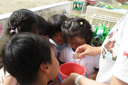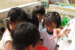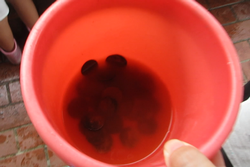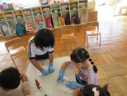 みんなでケチャップと水とを混ぜて、トマトのお風呂にし、一日置くことにしました。