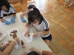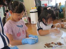 子どもたちは直接触れないよう気をつけながら、念入りに10円玉を磨きました。