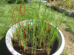 育てていないバケツの芽からも、なんと稲の赤ちゃんが茎の中にいるのを発見!
