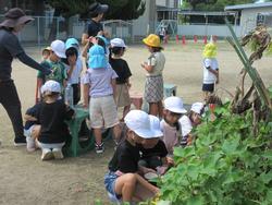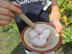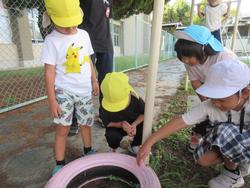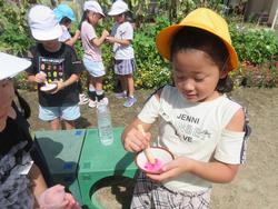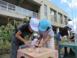 この日は再び色水遊びが再燃!花壇の綿も使って工夫して遊んでいましたよ!