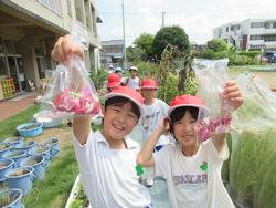 1年生がすり鉢とすりこぎを持って来ていたことから、色水遊びが始まりました!