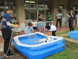本園では、これまで作ってきた自分の船を浮かべて、航海できるかどうか確かめる様子を見ていただきました。