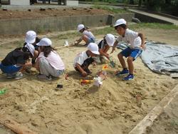 そのグループの中の一つ、砂山スライダーは、1学期の業間交流で砂場で遊んだパイプをヒントに、