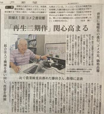 10月4日(土)の神戸新聞に米作りの記事が載っていました。