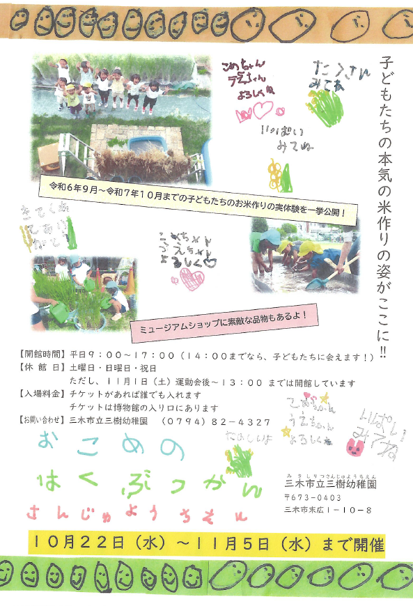 いきさつ、米作りの様子やエピソードを、写真や子どもたちの作品を交えながら辿ることができ、