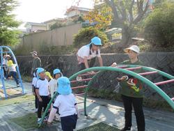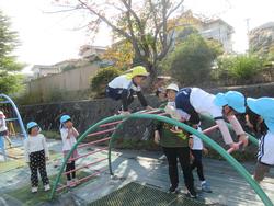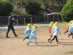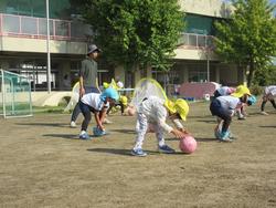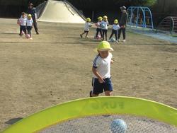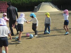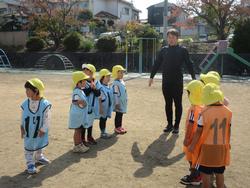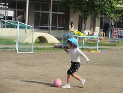 まずは、サッカー教室が始まるまで園庭で遊びました。