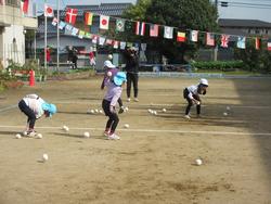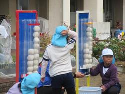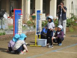 子ども「玉入れの白い玉だけ使うねん!」「相手の場所にたくさん玉を入れた方が勝ち!」