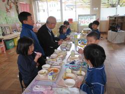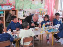 午前中のお米講座の後は、藤田さんを囲んで給食タイム!