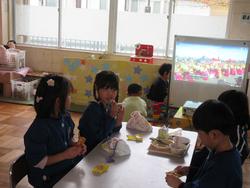 この日は特別にフィリピンのお祭りの動画を見ながらお食事です。