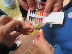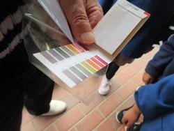 持って来てくださったリトマス紙をつけて、土の成分を調べました。すると…