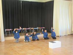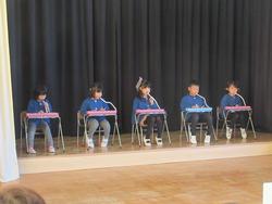 1学期はひまわり組の保育室で発表したので、年少さんたちにとっては初めての遊戯室での発表会でしたが、