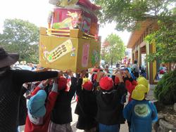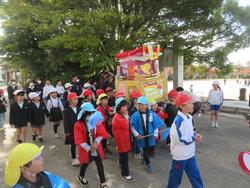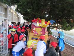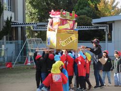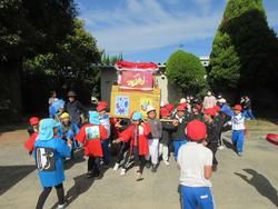 この日は、昨年度に引き続き、神和認定こども園と幼稚園の屋台が学校内を練り歩くお祭り交流でした!
