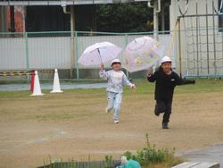 でも、前週の約束を覚えていた1年生たちは、傘をさして幼稚園までやって来てくれました!