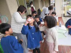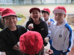 業間交流の後は、幼稚園のみんなもザクロジュースをいただきました(^^)