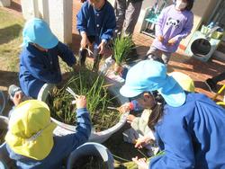 三樹幼稚園のひこばえちゃんの作況指数は34.6という数で、とてもいい出来だとほめていただきました。