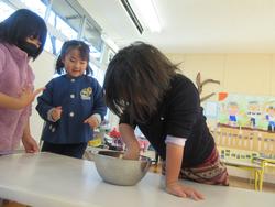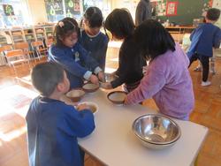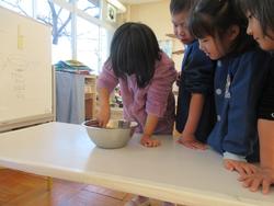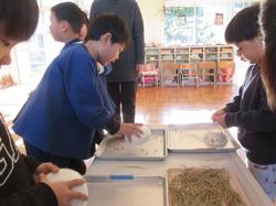 肥料を作る時に使った重さのはかりんぼうを使って、子どもたちと1合ずつ量ることにしました。