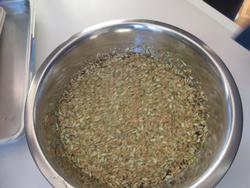 水の中の積算温度が100℃になったら、この玄米からひょこっと芽が出てくるとのこと。