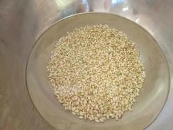 ボールの水の上に籾が浮かび、底に玄米が沈みます。浮いている籾を取り除き、玄米をそのまま水に浸しておきます。