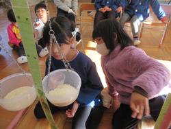 釣り合うように、もう一つのお皿にお米を入れていきます。