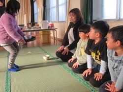 この日は、遊戯室が畳の和室に変身!正座する子どもたち、姿勢がきりっとしていますね。